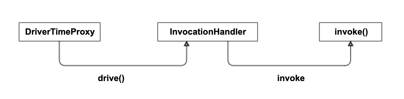 1 2 3 4 5 6 7 8 9 10 11 12 public class DriverTimeProxy implements Drivable { private InvocationHandler invocationHandler; public DriverTimeProxy (InvocationHandler invocationHandler) { this .invocationHandler = invocationHandler; } @Override public void drive () throws InterruptedException { invocationHandler.invoke(this ); } }