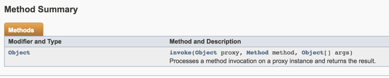 1 2 3 public interface InvocationHandler { Object invoke(Object proxy, Object[] args); }
